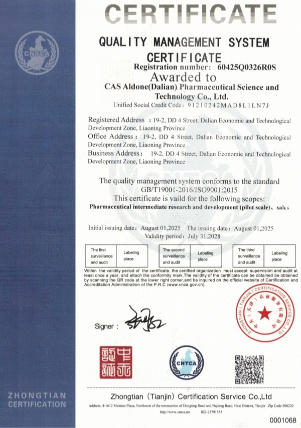 往后,中科全同会以这次认证为新的开始,继续改进和优化质量管理体系。在研发创新、人才培养、生产管理等方面多投入,努力成为靠产业链整体竞争优势、凭技术创新立足的全球化领先医药健康企业,为我国医药中间体行业的发展出更多力。